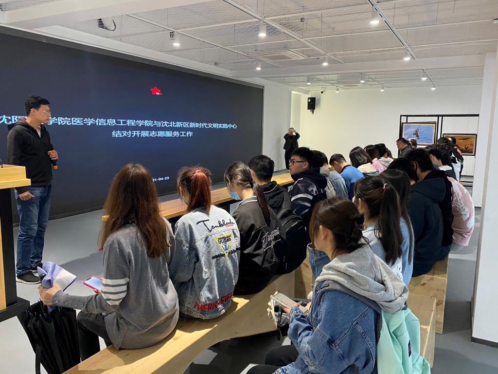 沈北新区新时代文明实践中心负责人张明波主任对实践中心的基本情况、发展现状和运行特色进行了介绍。他说,新时代文明实践中心是通过志愿服务的形式,学习宣传习近平新时代中国特色社会主义思想、宣讲党的方针政策、培育主流价值、活跃人民群众文化生活的平台。目前,沈北新区正在打造“4+5+N阵地链”,已建成1个区级文明实践中心、10个街道文明实践所、120个社区文明实践站、483个特色实践点,以“15分钟服务圈”为导向,着力从直达群众身边、环绕群众身边、集聚群众身边三个层次发力,建设群众身边纵横交织的文明实践网络链。截至目前,在本中心注册的志愿者人数4600多人,其中党员志愿者1300多人。他表示,希望双方高度重视结对共建,充分发挥各自优势,积极探索共建模式,相互学习,打造精品,协调推进新时代文明实践中心工作高质量、有特色地开展,有效实现打通宣传群众、教育群众、关心群众、服务群众“最后一公里”的目标。