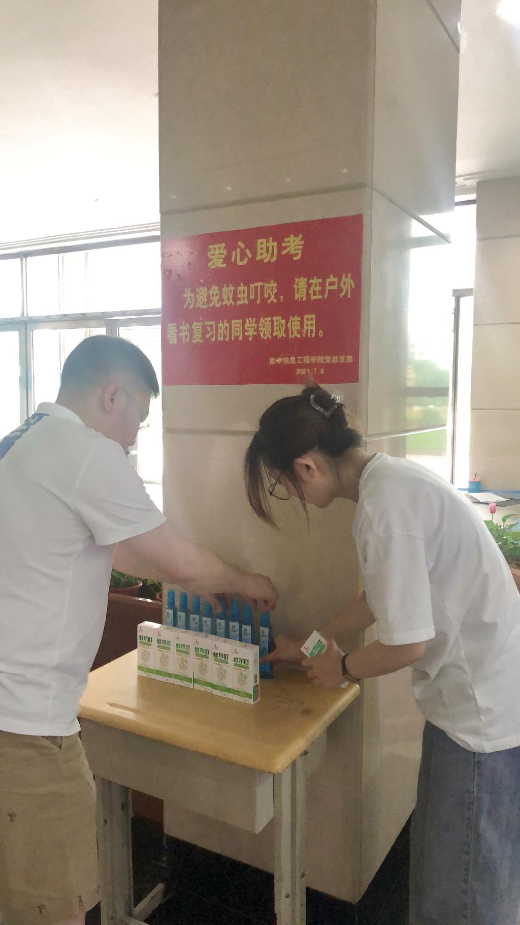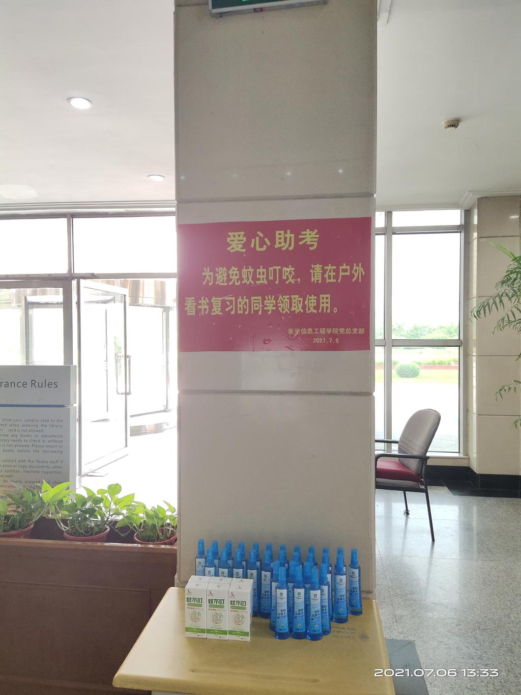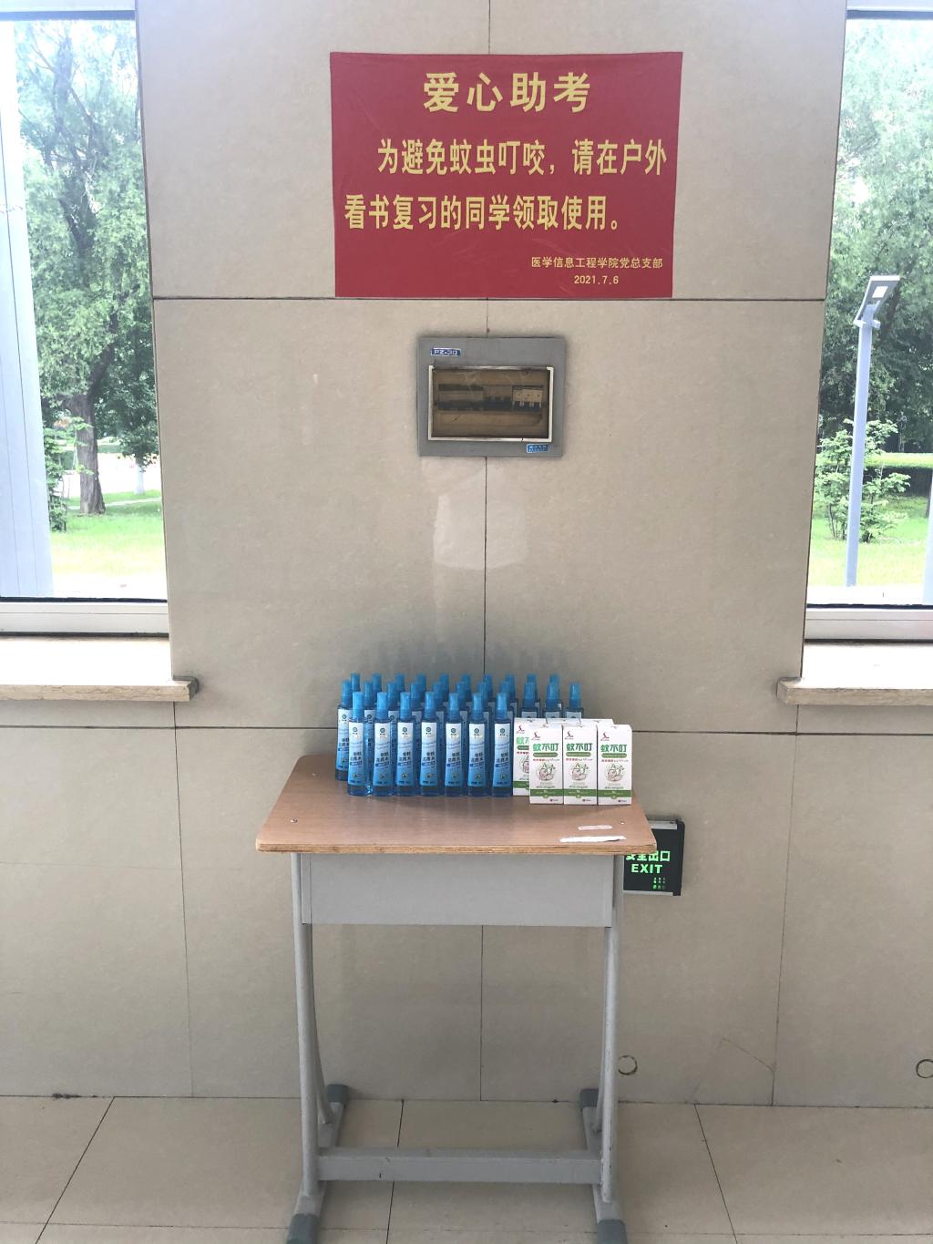 为了帮助期末备考的员工更好地复习,bevictor伟德官网党总支部继续开展“践行初心,爱心助考”活动,7月6日,为在户外看书的同学们提供便携式驱蚊花露水,分别放置在致远楼一楼、图书馆一楼大厅,方便员工领取使用。