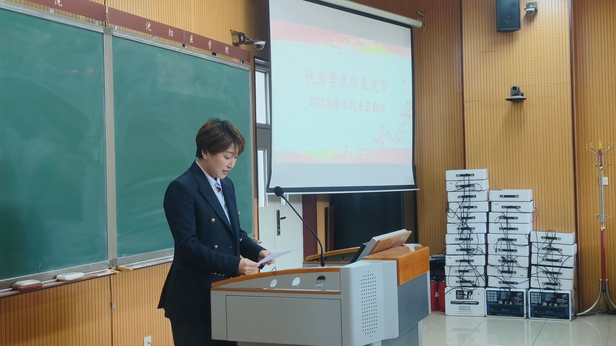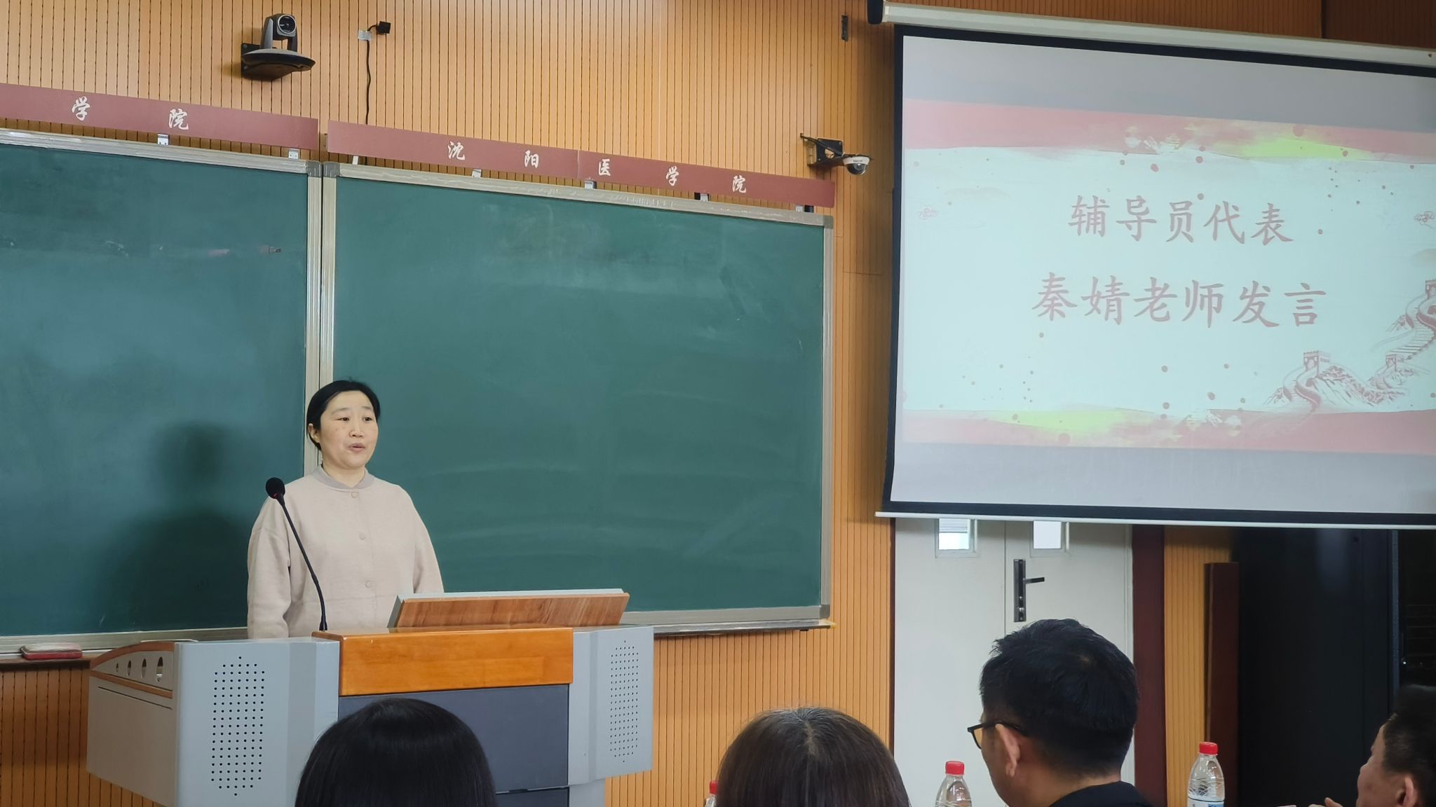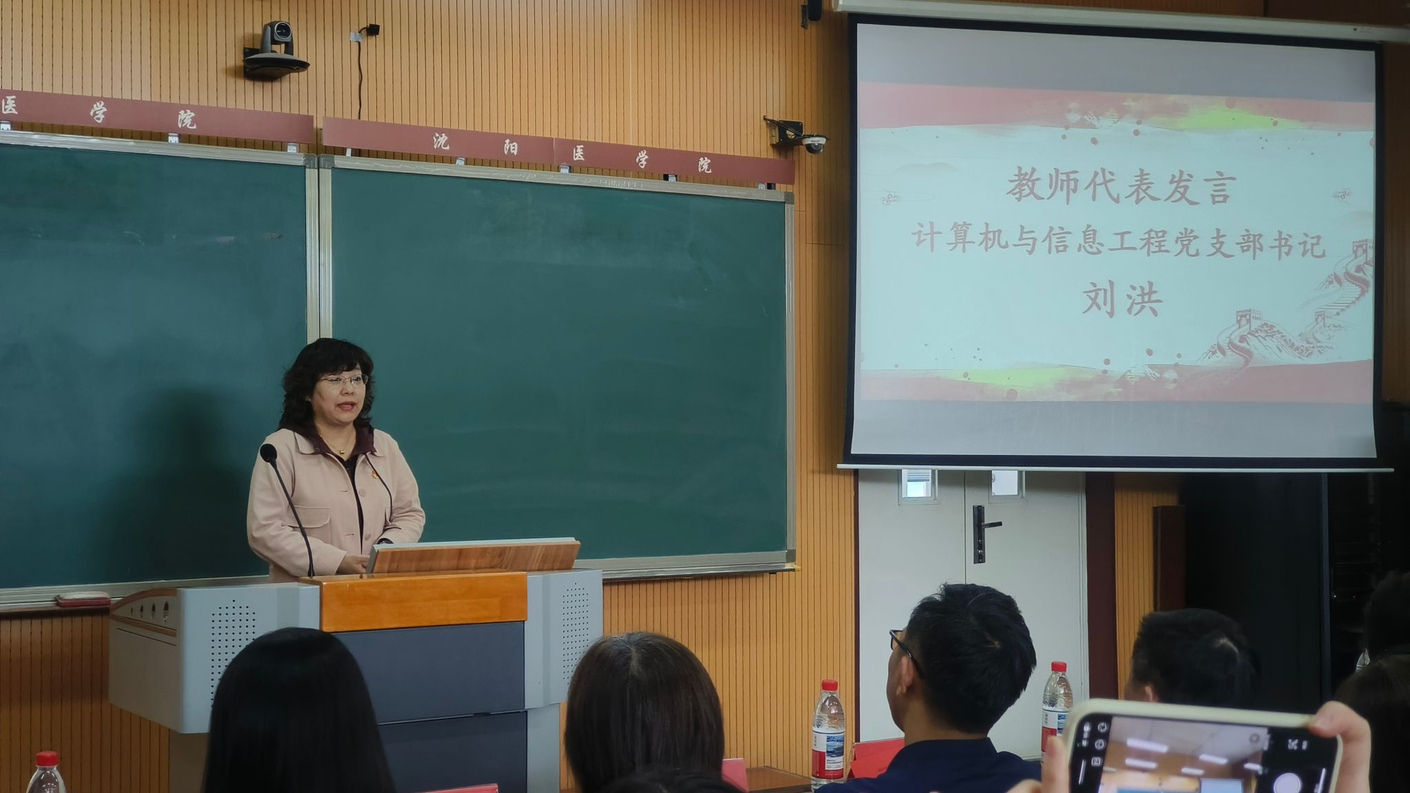 在教师代表发言环节,辅导员秦婧系统梳理了过去一年公司思政教育工作情况,并提出未来将进一步推动思政教育与员工学业、日常生活的深度融合;计算机与信息工程党支部书记刘洪从党建引领的角度,全面总结了“明德思政课堂”的实践成果,并表示未来将深化“双带头人”机制,着力打造“专业 + 思政”协同育人的创新范式。
