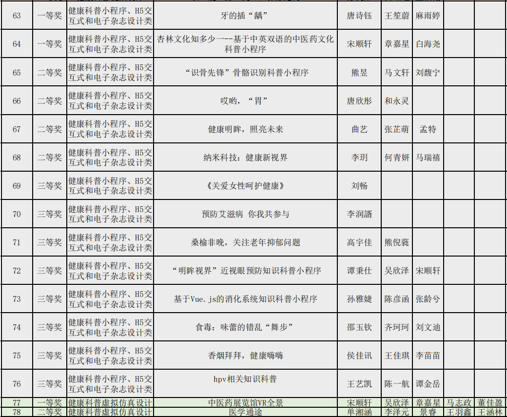 本次校内选拔赛为同学们提供了一个展示才华和锻炼能力的平台,促进了健康科普知识的传播和普及,有助于提高自身专业素养与实践能力、培养团队合作意识与创新创业精神,对推动健康科普知识的普及、提高公众的健康素养与提升个人能力与团队合作能力具有重要意义。